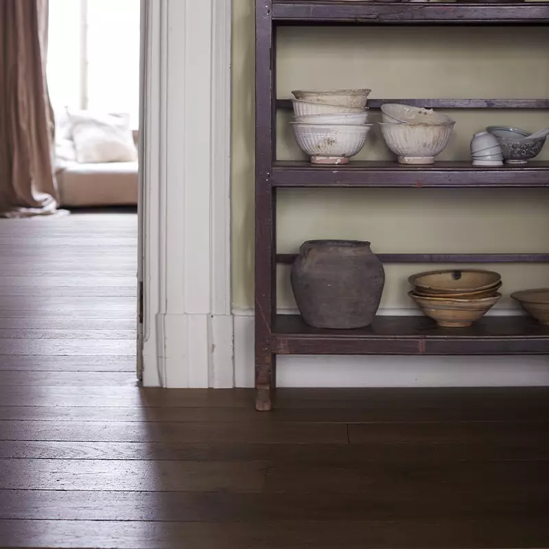 Ce pigment riche de nuances subtiles et profondes de notre Plancher Sully, est une teinte inspirée de celle de la parqueterie du mythique Château de Versailles. Chaque lame est fabriquée artisanalement dans nos plus beaux ateliers français. Sa pose « à la française » avec ses largeurs panachées nous apporte une atmosphère hors du temps.