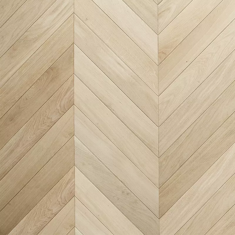 Le Chêne s’exprime ici dans toute son authenticité. Chaque lame de ce parquet s’exprime dans toute sa splendeur au travers de leurs veinages et de leurs grains. Dessinez vos espaces avec un bois de choix Pr Bis et des lames à coller. Sans chanfrein, les lames de 90 Mm de largeur se positionnent dans un angle fixe de 45°.