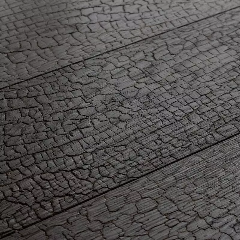 Let yourself be transported to wild lands with our "Australe" collection and our Semi-Solid Oak Basalte Parquet. Its textured lines, reminiscent of charred wood meant to be walked upon freely, extend from floor to wall.