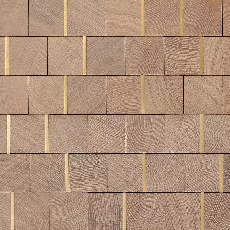 Pavés de Paris Wood End Grain Pavement Solid Oak Blanc Cérusé and Brass