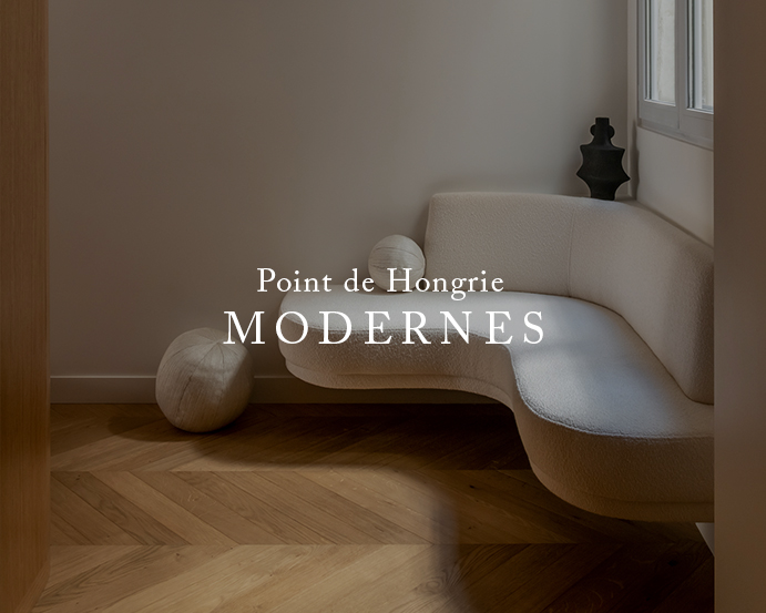Enhance your interior decor with our Hungarian Point parquet flooring. These chevrons, an iconic parquetry pattern, will bring a striking play of light to your spaces, shaped by the rhythm of its beams. Our pigments, either varnished or oiled, with delicate tones, will warm the atmosphere of your rooms. Let yourself be charmed by this traditional heritage and immerse your decor in a timeless space.
