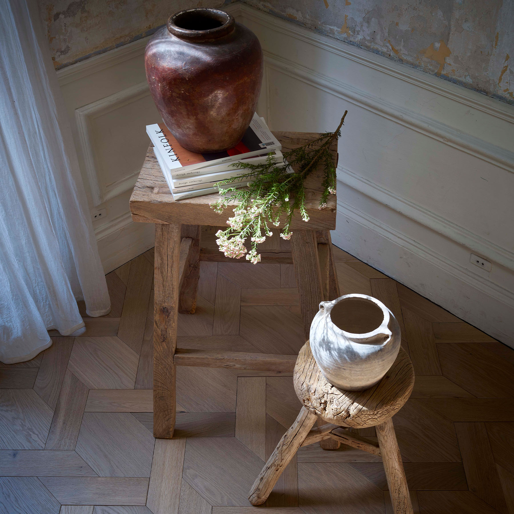 Our \'Vénitienne\' collection, featuring the Palladio Semi-Solid Naturalizzato embodies the spirit of La Dolce Vita. Its pigment, with a light natural accent created through a unique oxidation process, will imbue your interiors with an intimate and cozy atmosphere. The varnish adds a silky finish to the oak while providing robust protection against wear. Available in a variety of patterns, this versatile and adaptable design allows you to play with shapes, perspectives, and rhythms to create distinctive spaces using our Naturalizzato oak shade. With a strong commitment to environmental preservation, we ensure the quality of our parquet flooring collections by carefully sourcing wood from sustainable and eco-friendly origins.