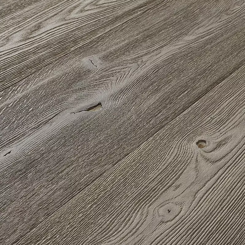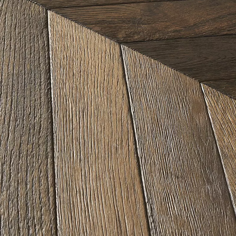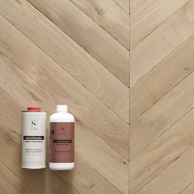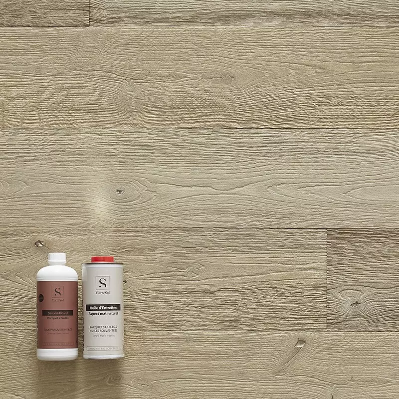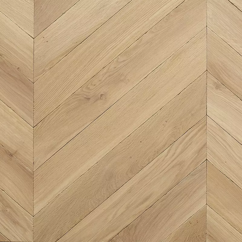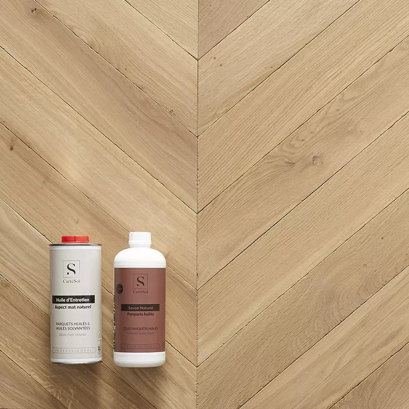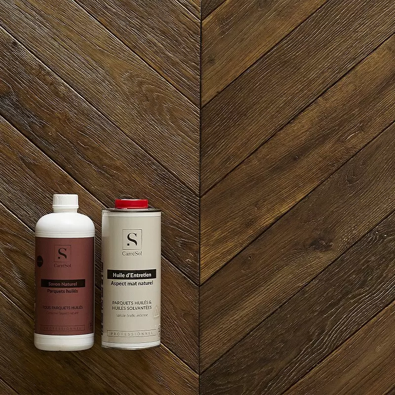 Le bois s’exprime dans toute sa splendeur avec sa finition huilée qui sublime son veinage. Celle-ci lui offre également une résistance exceptionnelle à l’usure et aux taches. Ses rives abimées à la main par nos artisans, apportent à ce plancher une sensation unique au toucher.