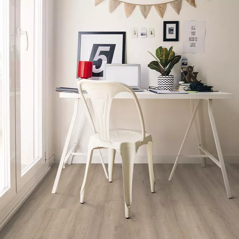 Découvrez notre parquet stratifié Chêne Railway, un revêtement de sol au design moderne. Son aspect visuel saisissant, mime les nœuds et les gerces du bois véritable, enchante les sens et apporte une touche d'authenticité à vos espaces.
