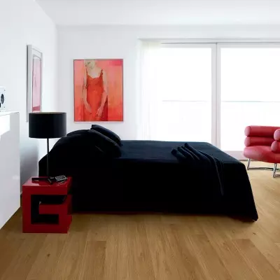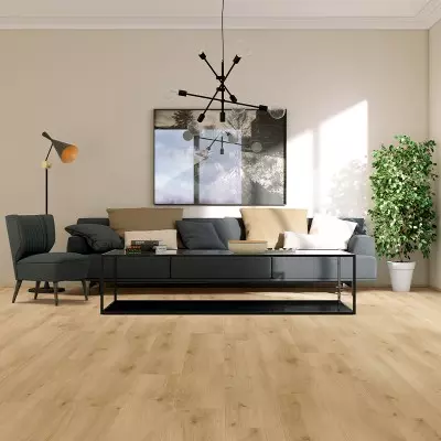 La technologie "Water Protect" assure une étanchéité parfaite à la surface, offrant une protection intégrale à chaque lame y compris les chanfreins, contre les infiltrations d'eau. Grâce au système d’assemblage clic, l'installation devient plus simple et précise.