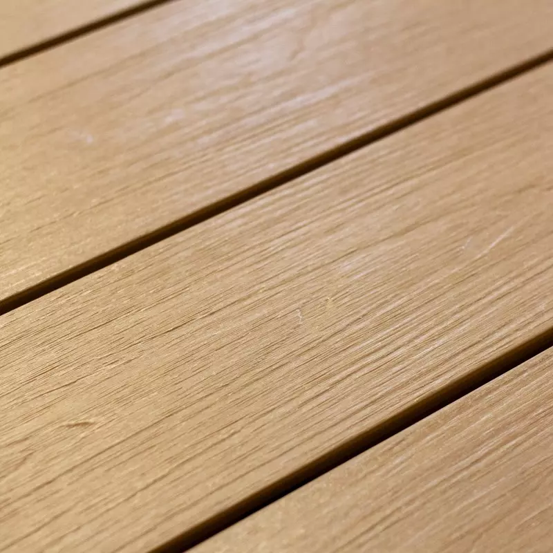 Ces lames offrent une double finition : une face brossée mat pour une touche de modernité et une face veinée au relief imitation bois, mimant la chaleur du bois naturel. Grâce à la co-extrusion, les lames sont efficacement protégées contre l\'humidité, les tâches et la décoloration, assurant ainsi une longévité et un éclat inaltérée.