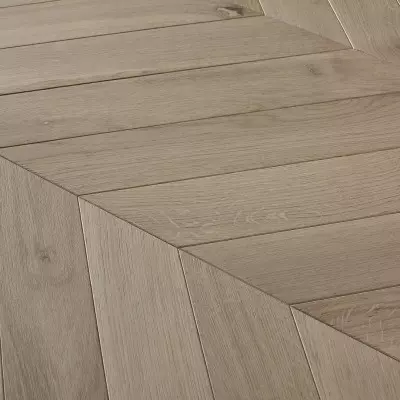 Notre Point de Hongrie Chêne Contrecollé Saline et ses nuances minérales délicates offriront à votre intérieur une atmosphère sereine et chaleureuse, illuminant votre décoration. Son brossage artisanal confère au bois un toucher soyeux tandis que sa finition vernie le préservera durablement contre l'usure et les éraflures.