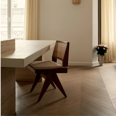 Notre Chêne Shade Contrecollé se décline en lames droites, Bâton Rompu, et comme présenté ici en Point de Hongrie. À partir d’une seule teinte, vous pourrez donc à loisir la décliner en une infinité de combinaisons.