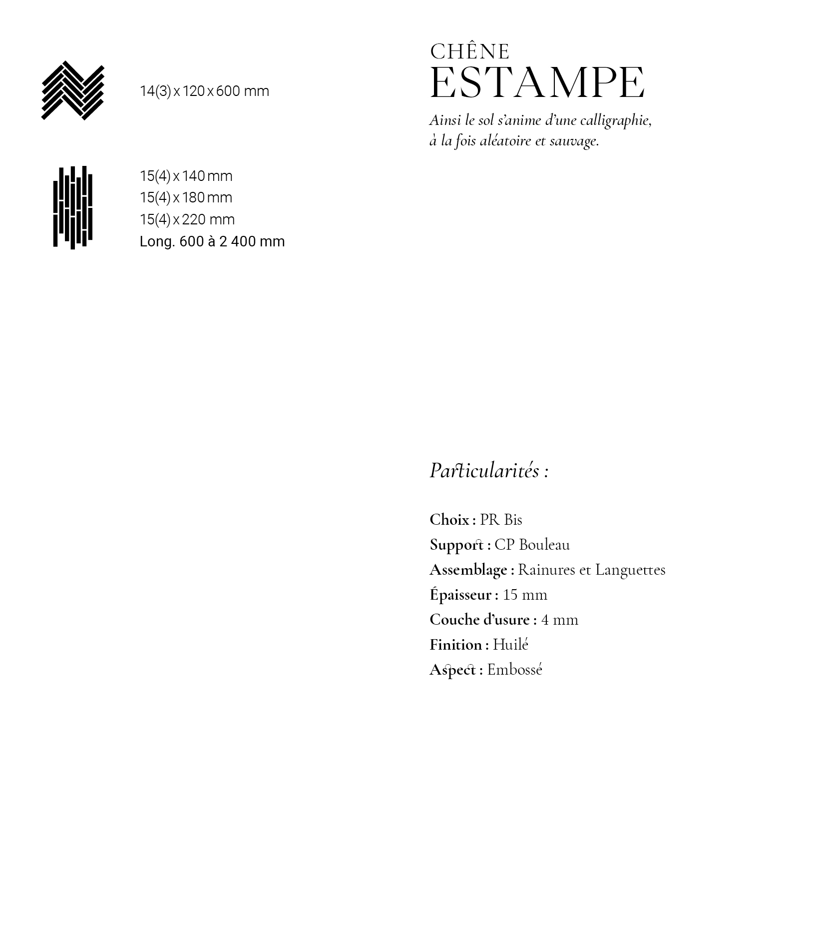 Laissez-vous transporter vers des terres sauvages avec notre collection "Australe" et notre Parquet en Chêne Semi-Massif Estampe. Ses lignes écaillées, tel un bois brûlé à fouler sans modération, se prolongent du sol au mur.