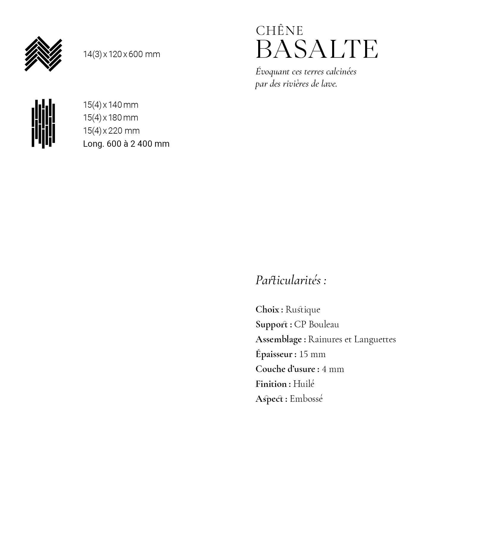 Laissez-vous transporter vers des terres sauvages avec notre collection "Australe" et notre Parquet en Chêne Semi-Massif Basalte. Ses lignes écaillées, tel un bois brûlé à fouler sans modération, se prolongent du sol au mur.