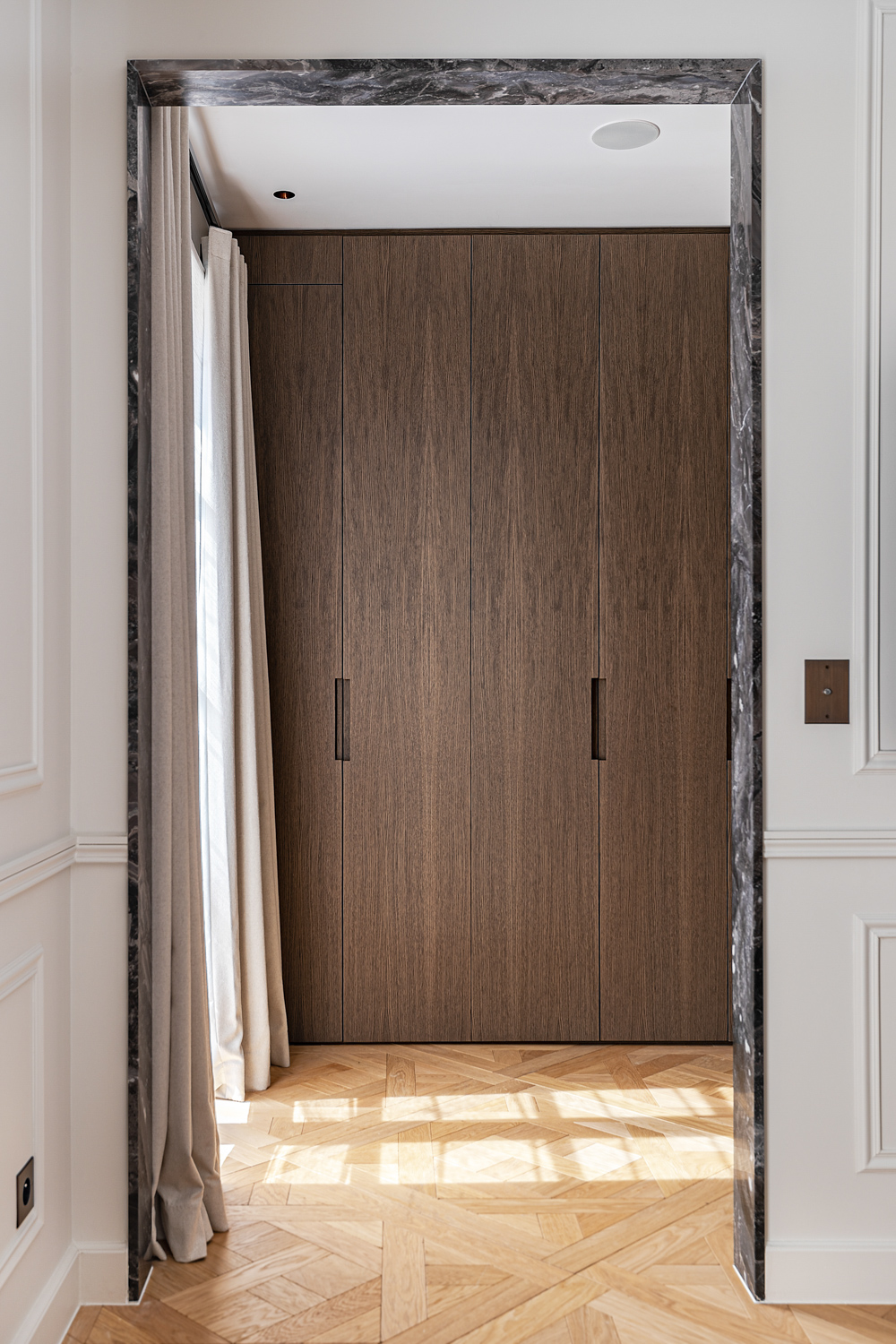 Le Chêne se livre ici dans toute son authenticité. Son veinage, son grain et ses nœuds dessinent à la surface du bois un motif unique.