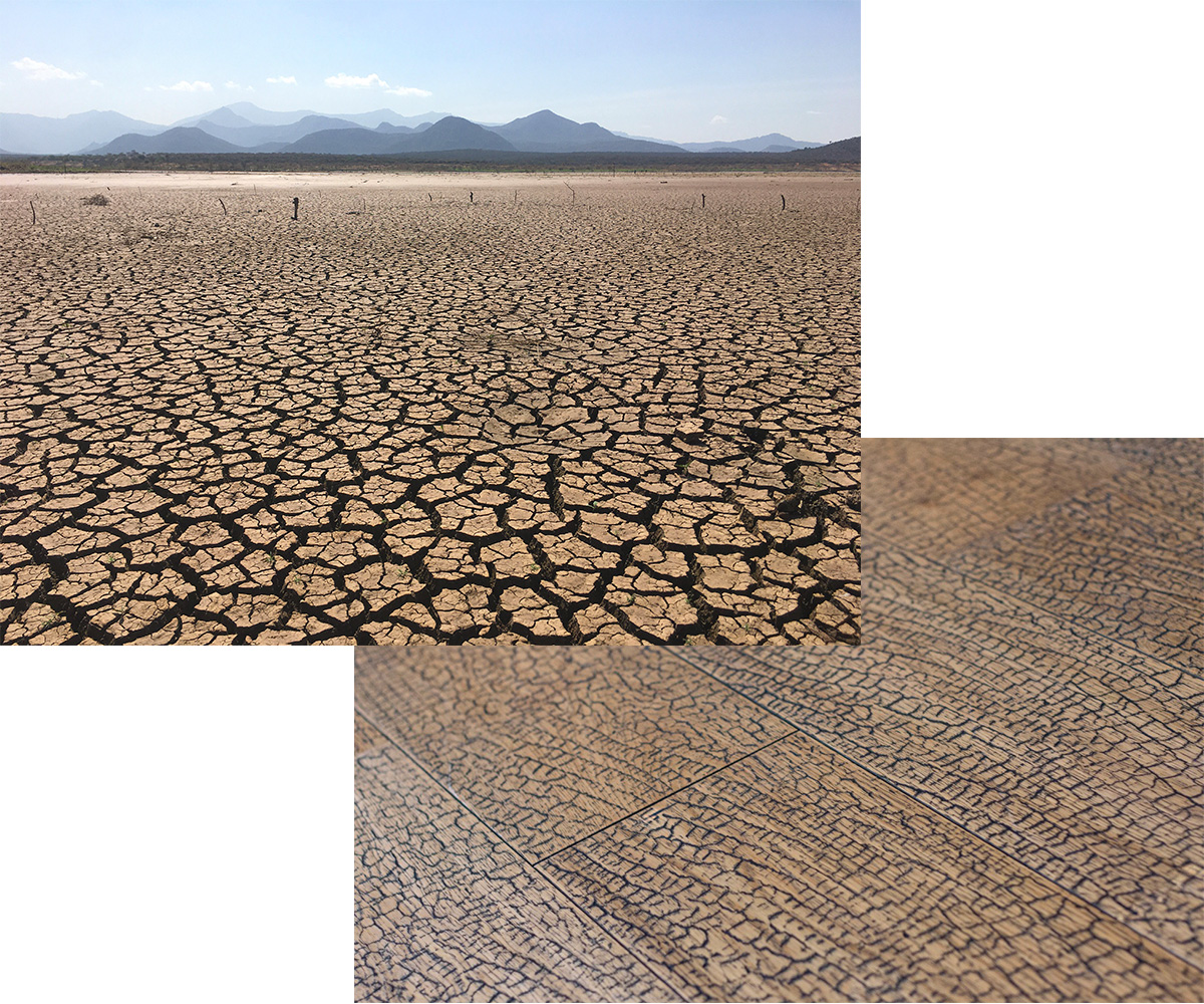 Il dévoile un bois embossé, aux lignes écaillées, craquelées, texturées — vibrant, comme marqué à jamais par les éléments.