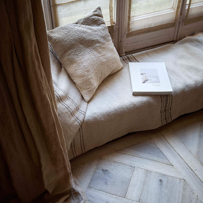 Fabriqué dans notre atelier français selon des procédés ancestraux, séché à l’air libre, ce Versailles continu réinvente l’élégance du XVIIIe siècle avec une sensibilité nouvelle — une beauté imparfaite, éminemment vivante.