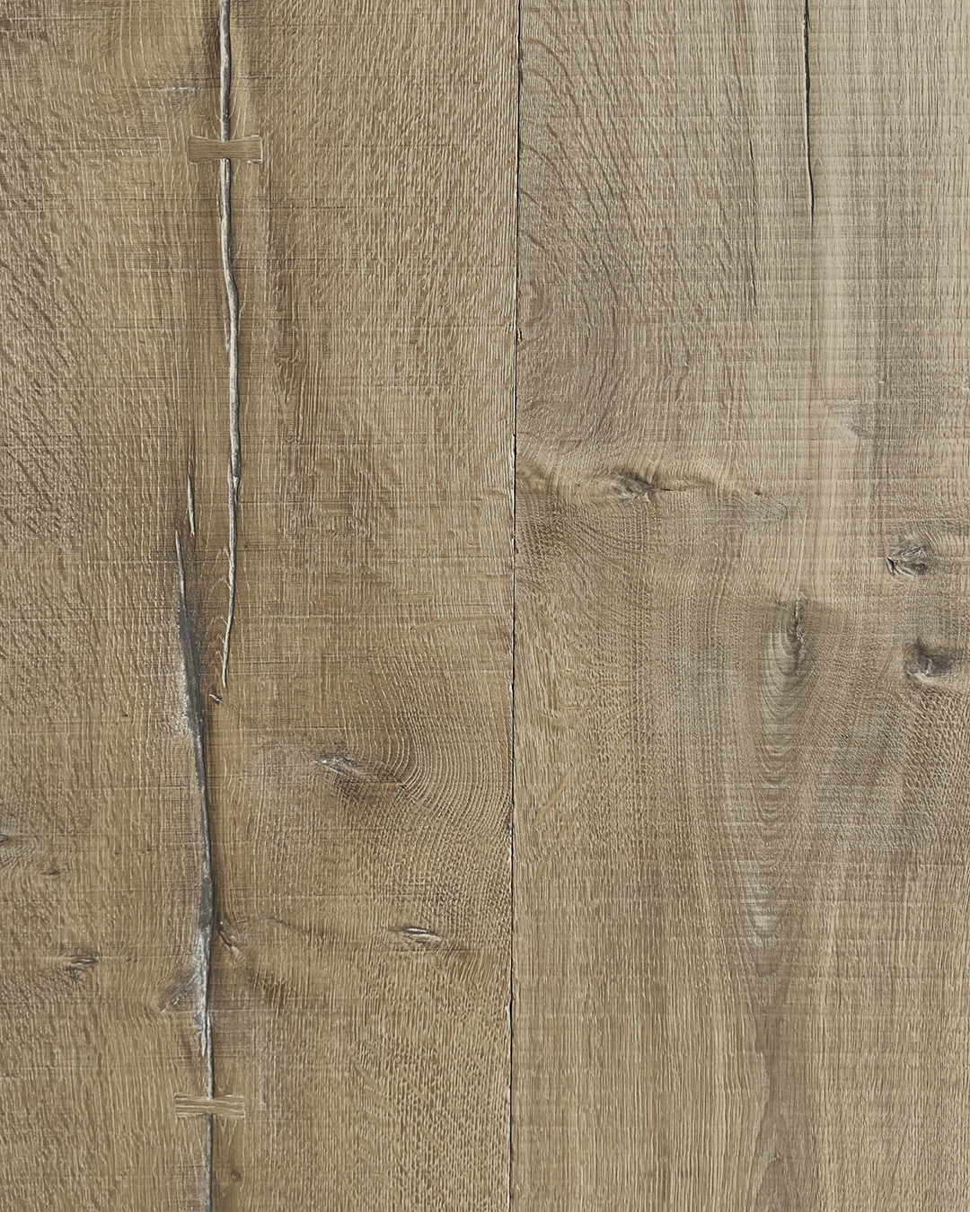 Ses planches larges, allongées, élancées, révèlent la beauté nue du Chêne patiné.