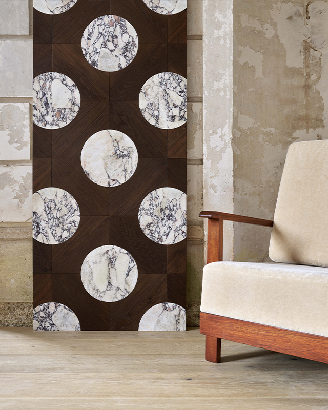 Réinterprétant les codes de la marqueterie, elle est l’alliance parfaite entre la sophistication du contemporain et l’élégance du classicisme.