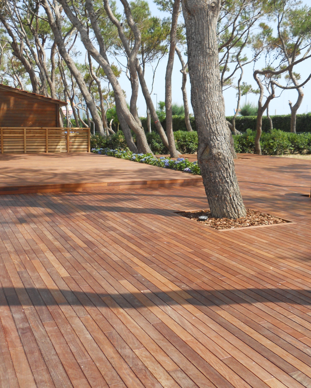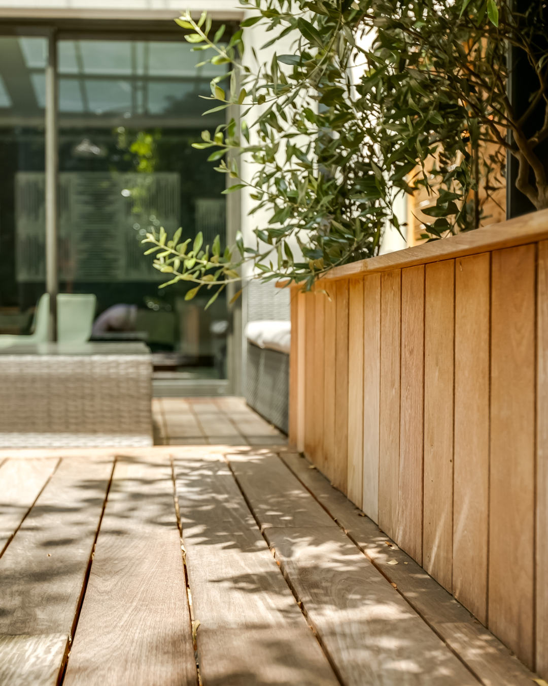 Des essences précieuses et durables, aux nuances profondes, pour une terrasse chaleureuse et raffinée.