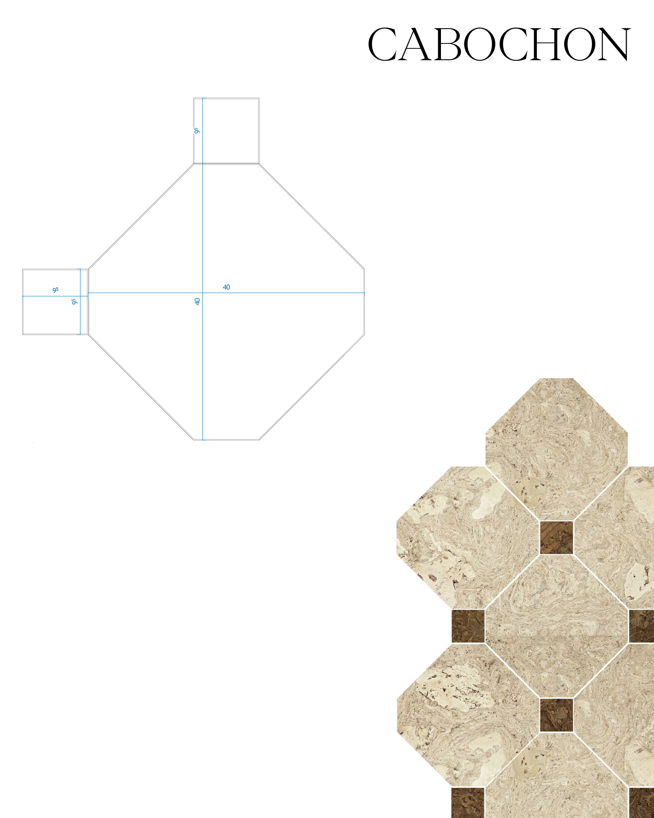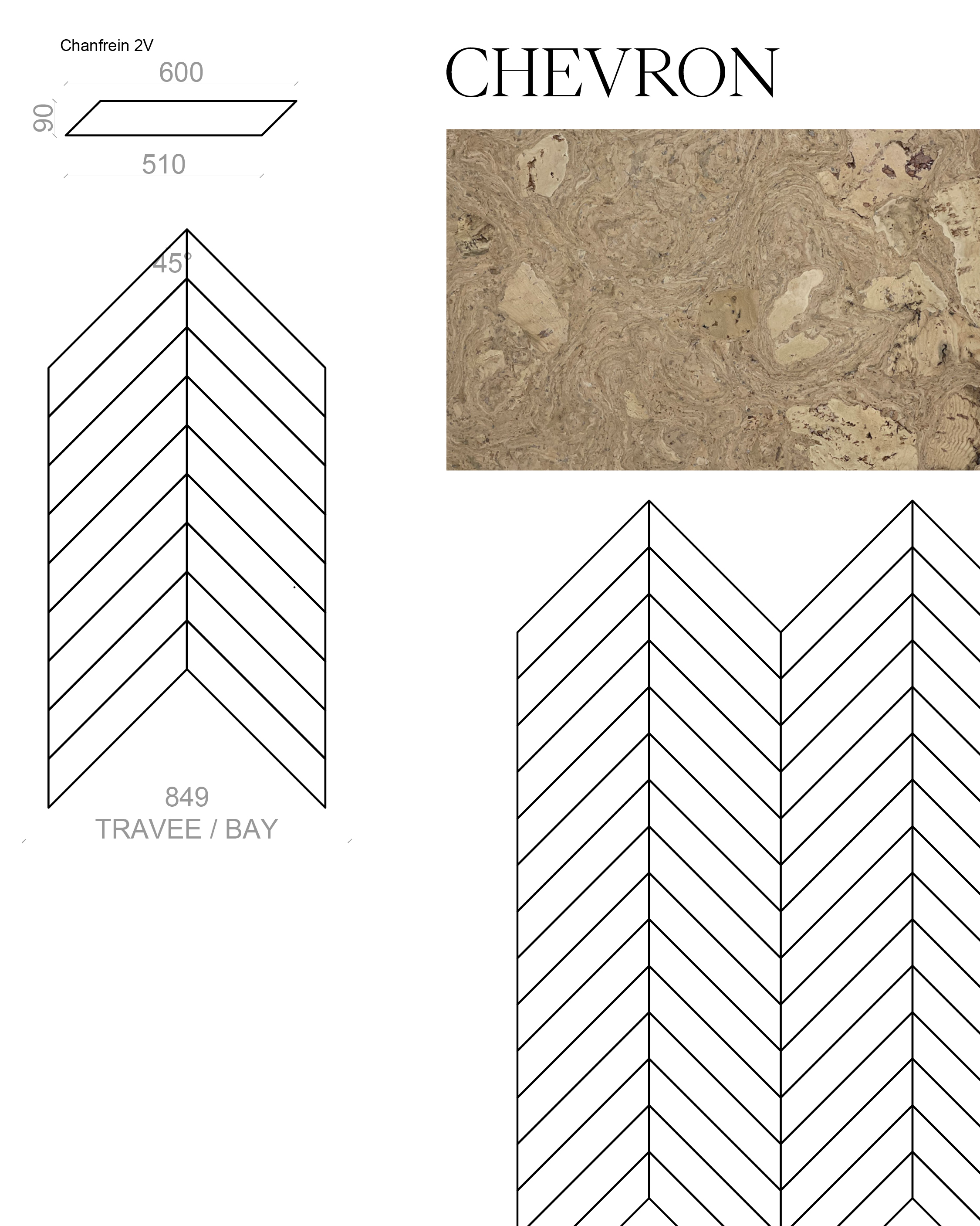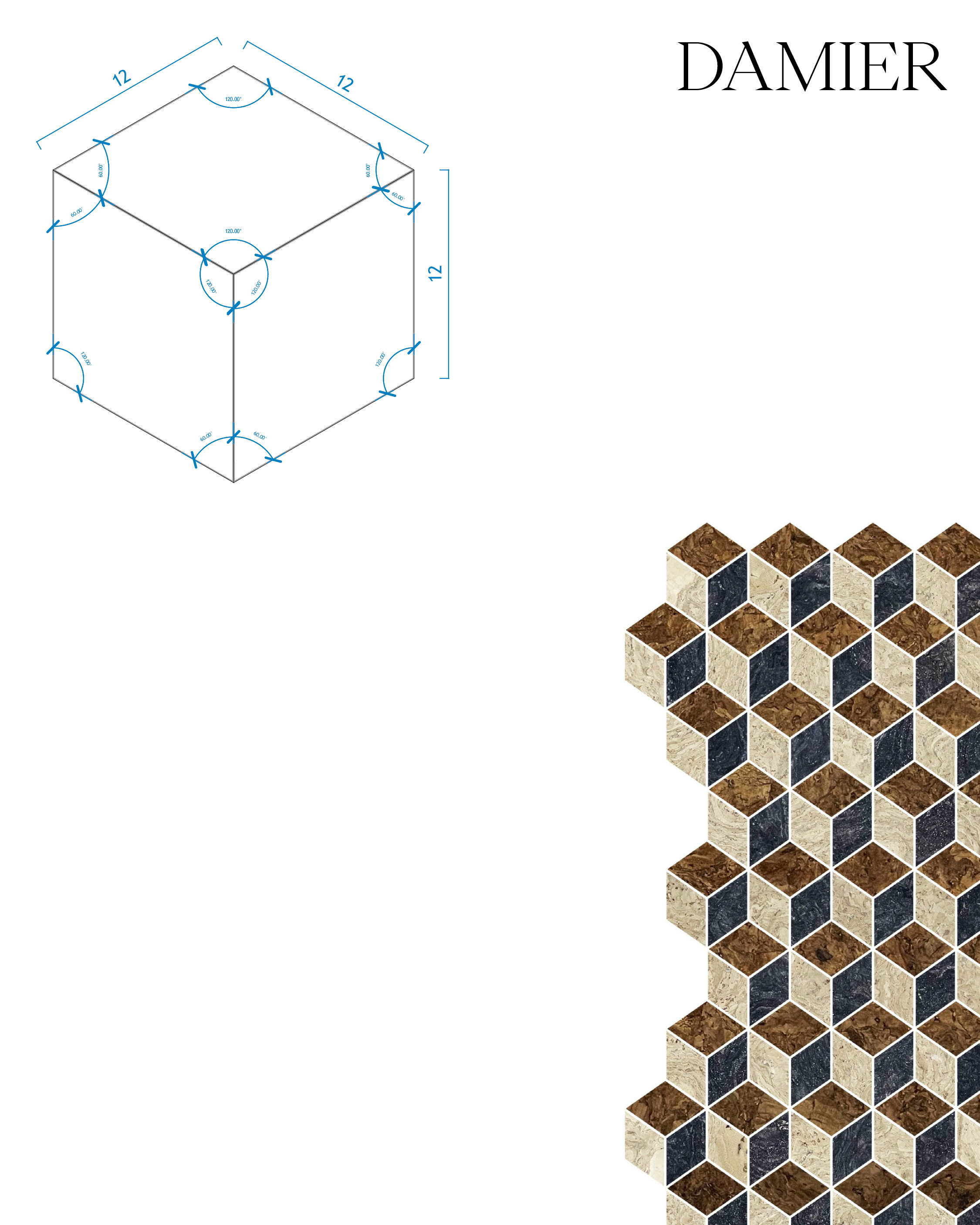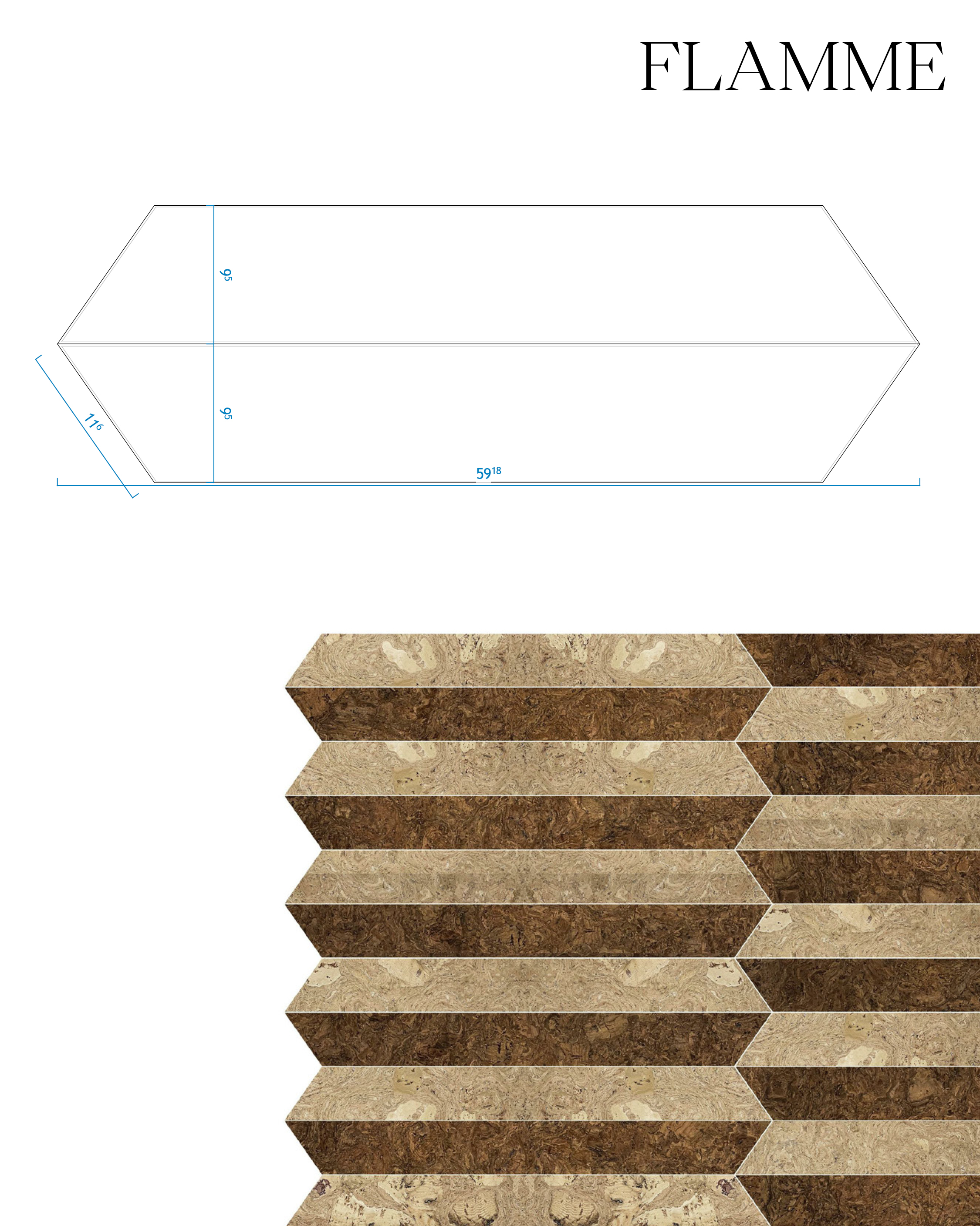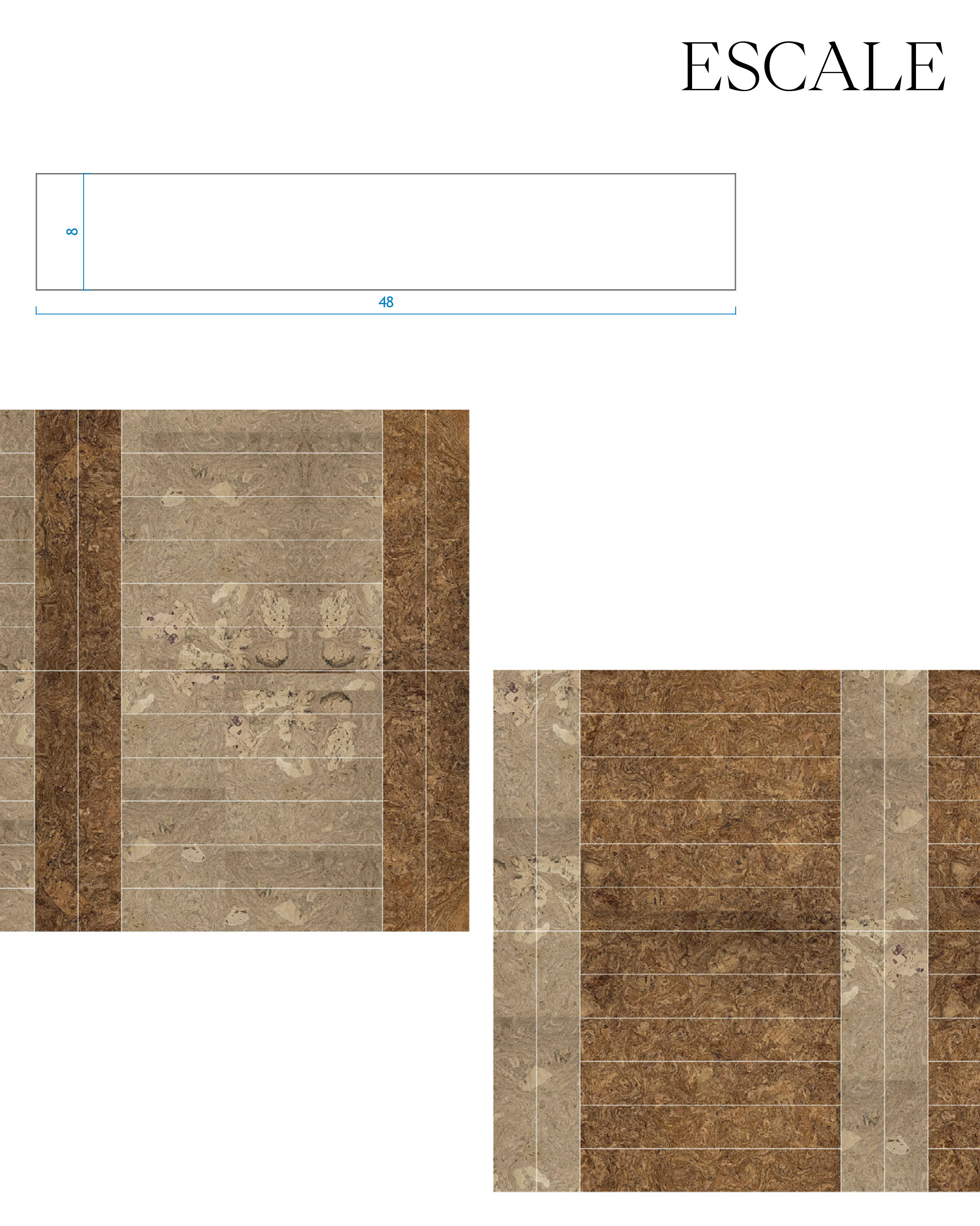 Les calepinages, traduisent notre approche architecturale du sol : équilibre des lignes, harmonie des proportions. Avec cette collection on a cherché à bousculer les codes.
