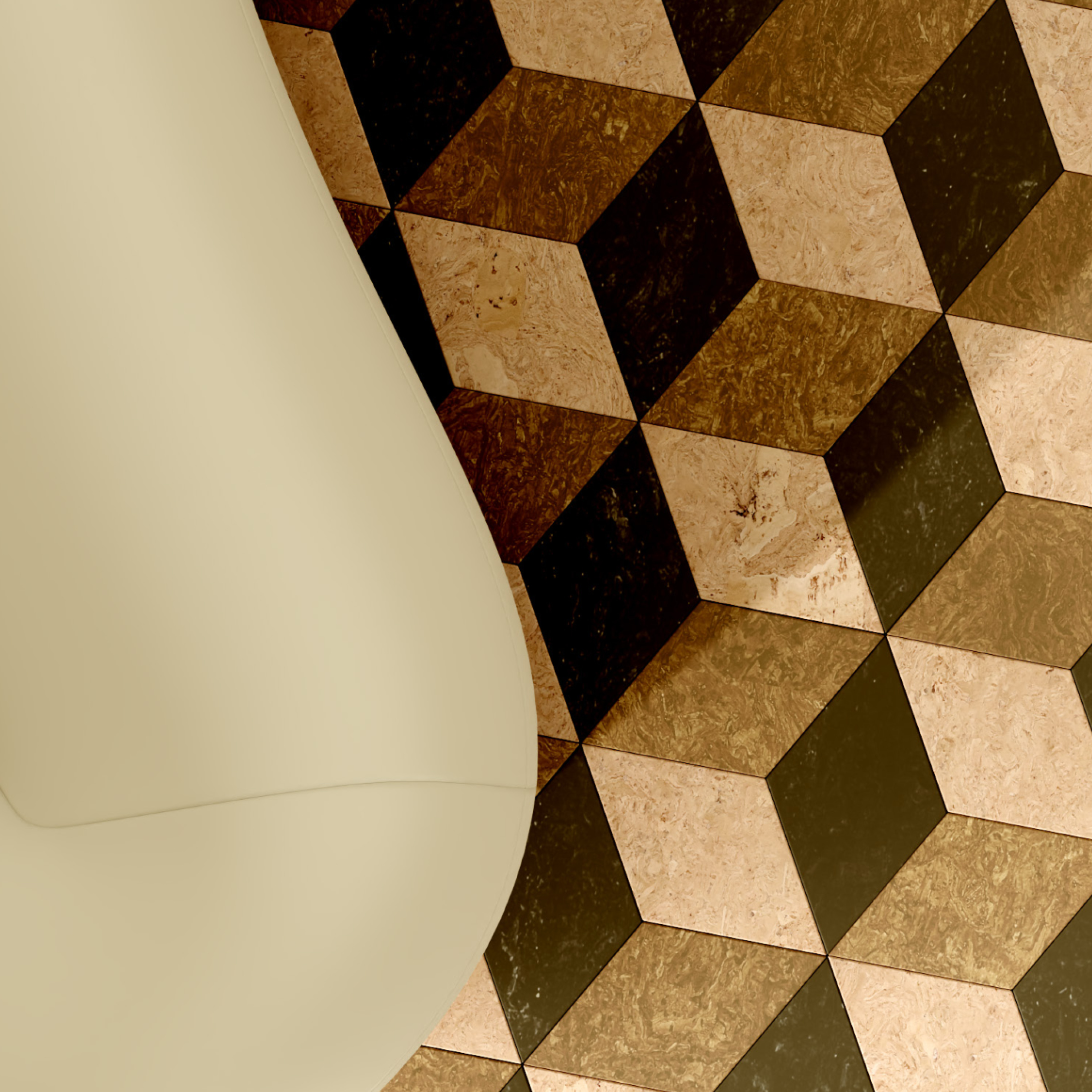 Avec ORIGIN, le design devient un langage de matière. Nous avons cherché à révéler la beauté intrinsèque du liège en le libérant de son image traditionnelle. Sous la pression, il se transforme : sa surface dense et lumineuse évoque la pierre, sans jamais la reproduire.