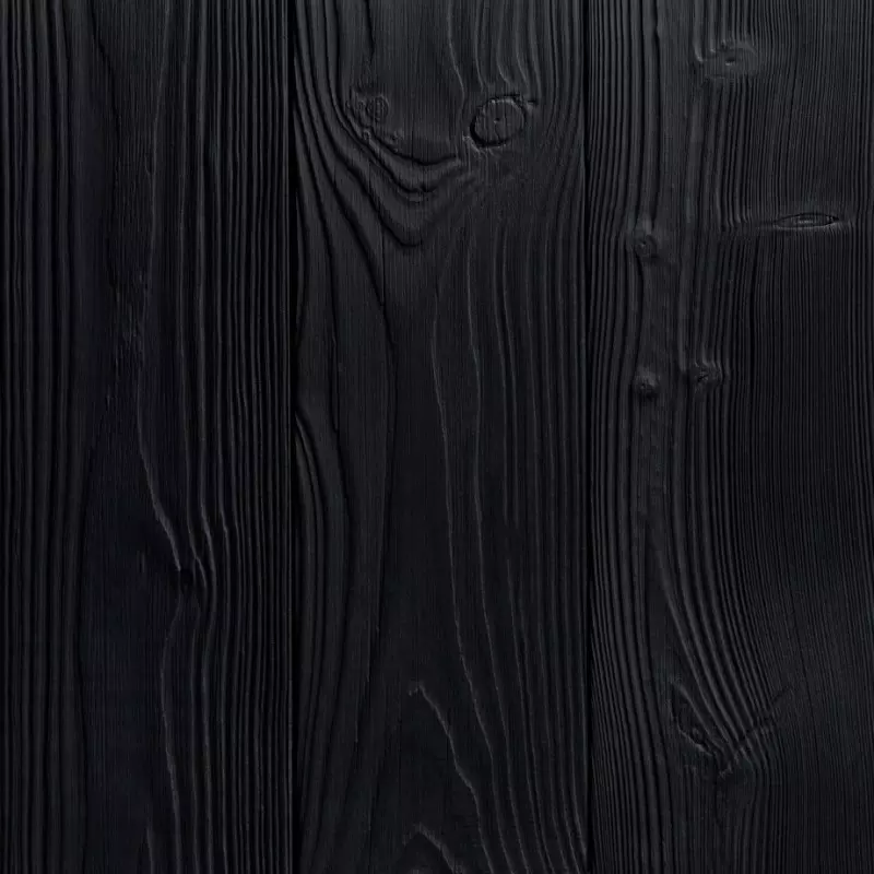 Notre Ténébreux, issu de la collection "L'Outrenoir", un Bardage en Douglas brûlé et brossé incarne une esthétique sobre et raffinée, où la matière se fait texture et lumière. Sa teinte noir intense aux reflets organiques révèle un bois travaillé avec précision, entre force du feu et délicatesse artisanale.