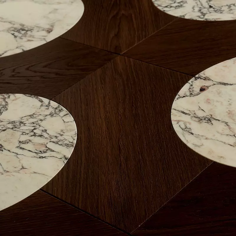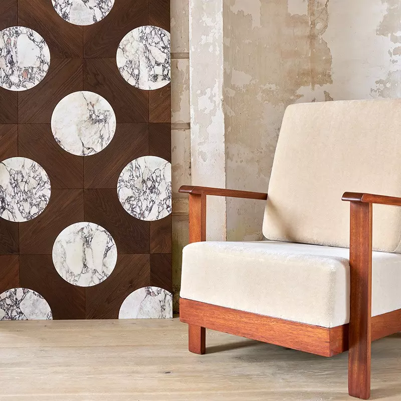 C’est dans un trésor caché de Paris que le parquet MÉDAILLON prend racine. Le passage Verot-Dodat, au décor néo-classique et inscrit aux Monuments-Historiques, abrite désormais la galerie du Designer Pierre Gonalons. C’est pour ce lieu emblématique que sera dessiné le MÉDAILLON.