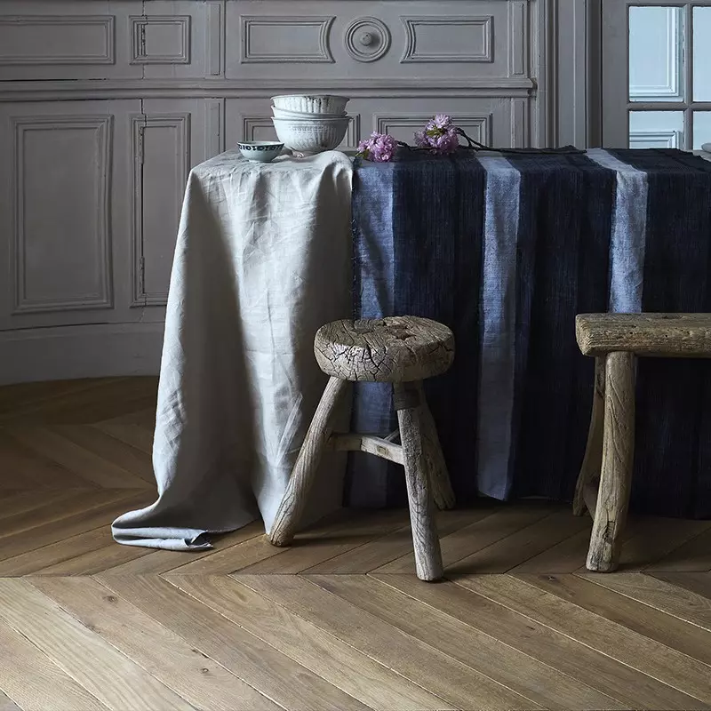 Notre Point de Hongrie Tavline rythme l’espace grâce à son jeu de travées. Ses nuances mettent en lumière les lignes graphiques de ce motif iconique.