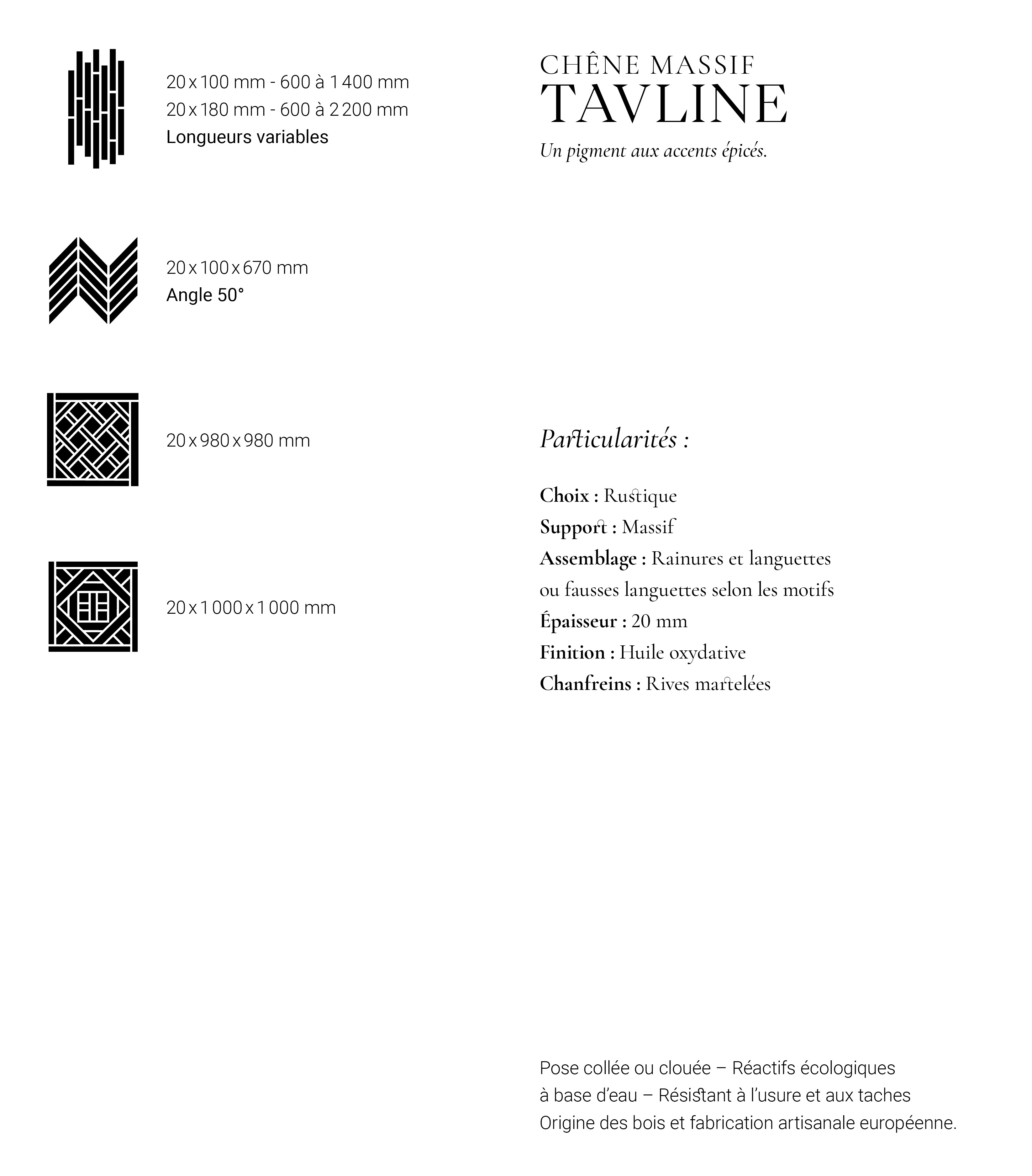 • Point de Hongrie Martele Chene Massif Tavline - 20x100x670 - choix rustique - produits entretien - carresol