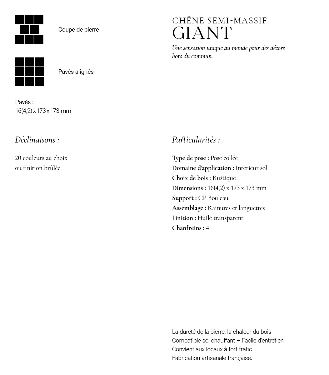 Soucieux de la qualité de nos créations et de l'origine de nos essences, la collection « Les Pavés de Paris » est le résultat d’un sourcing rigoureux entre fabrication française et forêts durablement gérées.