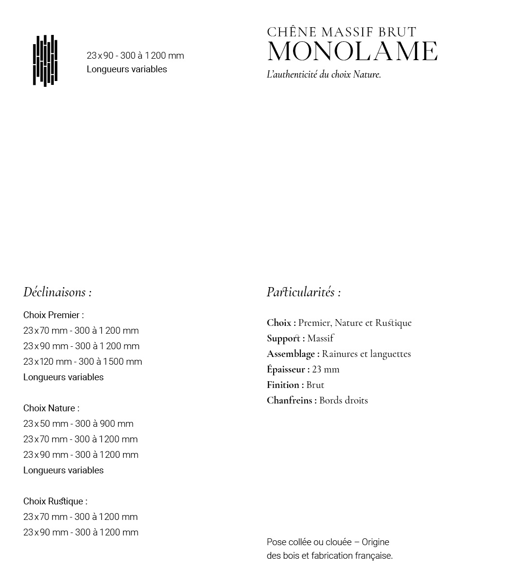 La qualité de nos créations et l’origine de nos essences sont au cœur de nos préoccupations. Ainsi, ce parquet résulte d’un sourcing rigoureux entre fabrication française et forêts durablement gérées.