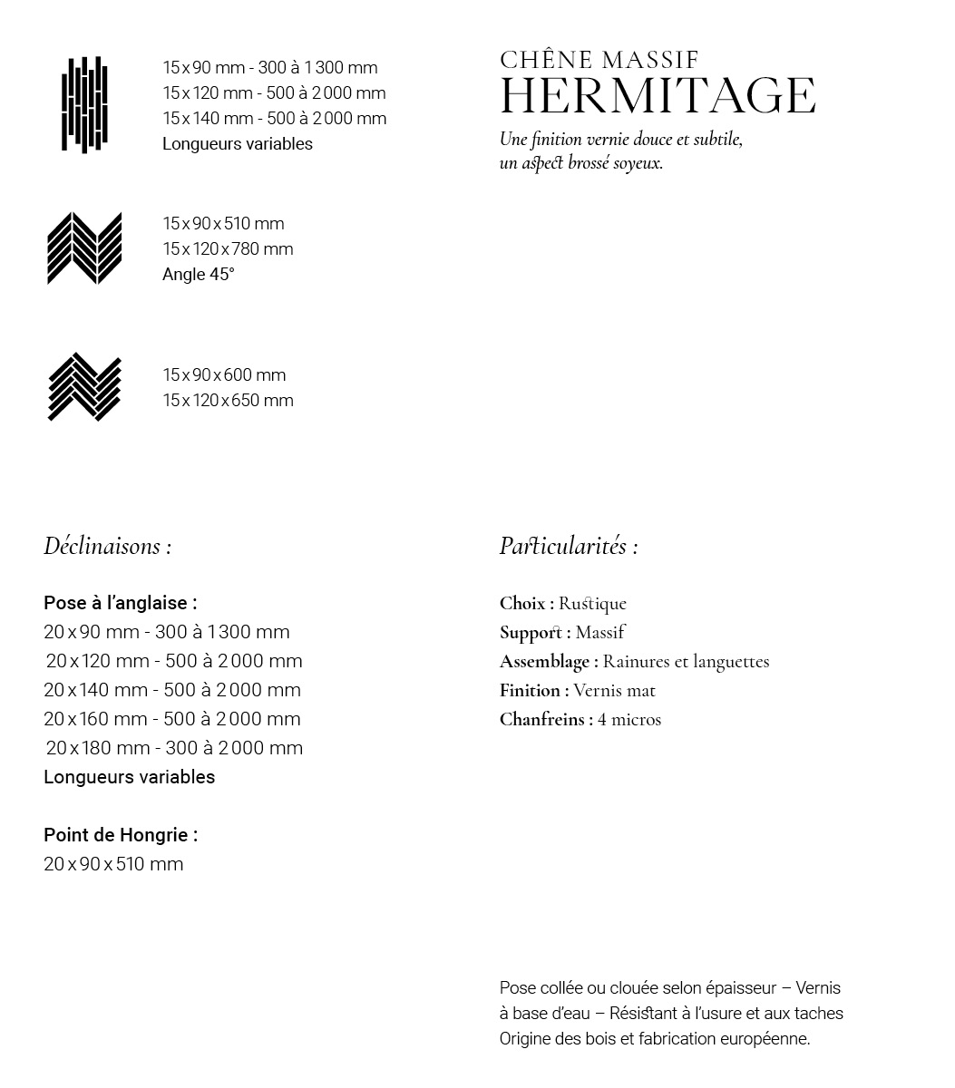 Illuminez votre quotidien avec notre collection « Art de Vivre » et notre Bâton Rompu en Chêne Massif Hermitage. Il nous dévoile ici une symphonie de nuances éclatantes, proférant à votre intérieur une atmosphère douce et délicate.