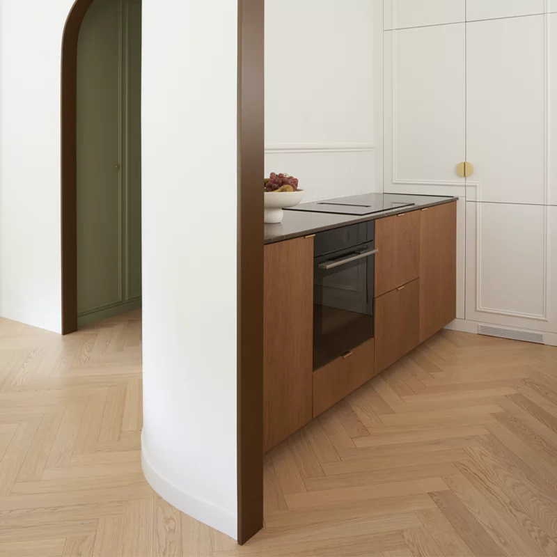 • Bâton rompu Chêne Riviera, réalisation dans un appartement avec cuisine ouverte
