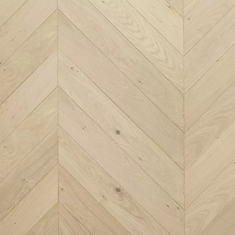 Notre Chêne Pure Contrecollé se décline en lames droites, Bâton Rompu, et comme présenté ici en Point de Hongrie. À partir d’une seule teinte, vous pourrez donc à loisir la décliner en une infinité de combinaisons.