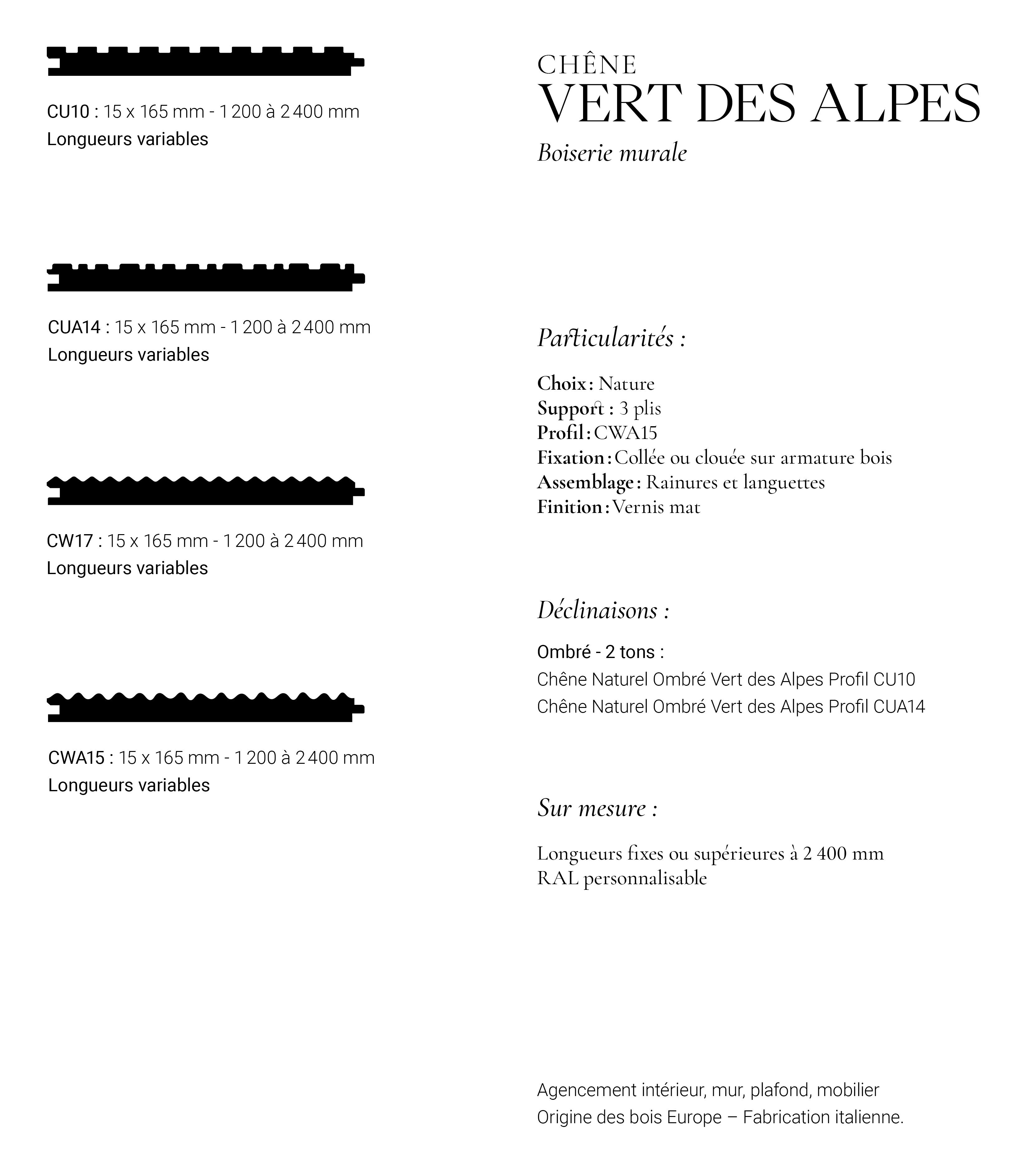 Boiserie Murale Chêne Vert des Alpes Vernis Laqué
