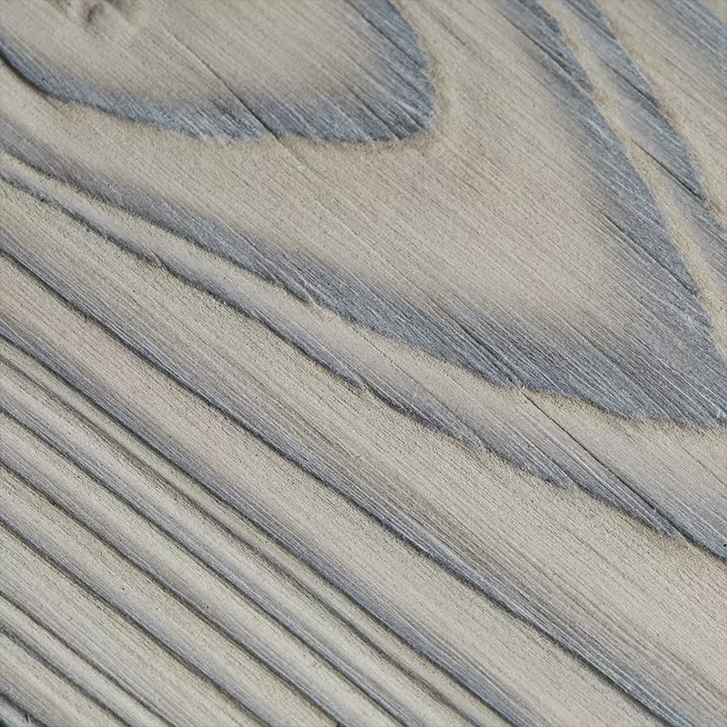 Inspirée du savoir-faire ancestral du Shou Sugi Ban, cette finition sublime le veinage du bois, ses nœuds, ses reliefs, et ses jeux d’ombres naturels. Chaque lame raconte une histoire, celle d’un bois texturé, vibrant, résolument minéral, prêt à embrasser tous les styles d’aménagement – du jardin contemporain au patio plus traditionnel.