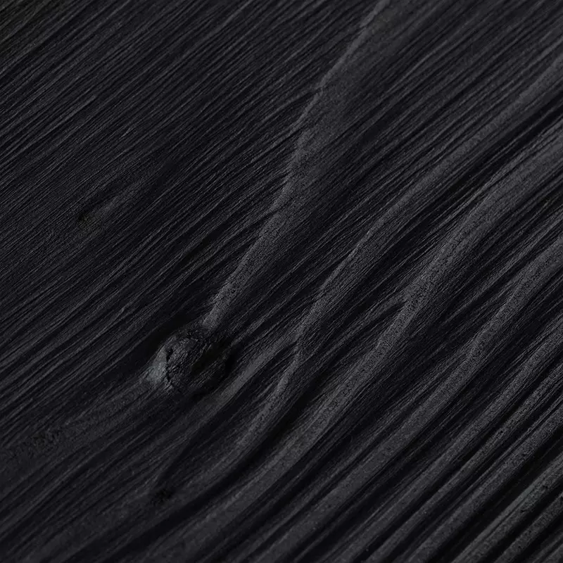 Inspirée de la technique traditionnelle du Shou Sugi Ban, cette finition sublime le veinage, les nœuds, et les reliefs naturels du bois, jouant avec les ombres pour offrir un rendu texturé, puissant et résolument contemporain. Chaque lame est une histoire en soi, un bois habité d’une énergie minérale qui dialogue aussi bien avec les jardins modernes qu’avec les espaces plus classiques.