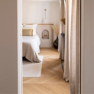 Laissez-vous porter par la joie de vivre de notre collection « Vénitienne » imaginée comme une invitation à la créativité en toute liberté. Notre Point de Hongrie en Chêne Semi-Massif Naturalizzato incarne l’esprit de la Dolce Vita : une douceur de vivre en toute simplicité.