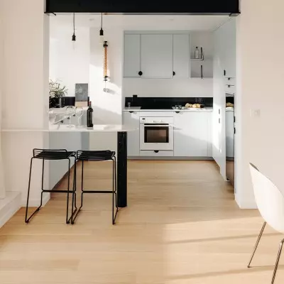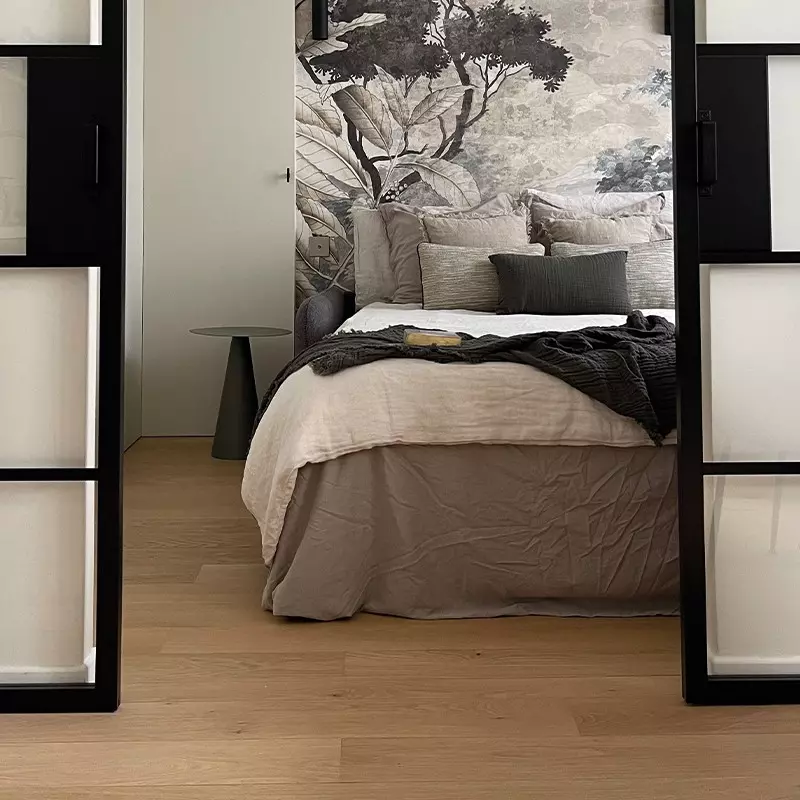 Add a contemporary flair with our Riviera Oak from the 'Art de Vivre' collection, featuring a varnished finish that lends a light elegant look. The subtle brushing reveals a silky texture. With our versatile 'à la carte' collection, you have the freedom to customize your wood flooring—choose your ideal stain, wood grade, and pattern, and personalize with custom planks in various widths and lengths. Whether you prefer Chevron, Herringbone, or straight planks, our Riviera Oak parquet flooring provides endless possibilities from a single shade, allowing you to create a truly bespoke interior. Dedicated to quality and sustainability, we meticulously source our materials, focusing on short supply chains and sustainably managed forests. Inspired by the rich heritage of the Bordeaux region, where our factory is located, this collection pays tribute to the birthplace of wine and the craftsmanship it represents