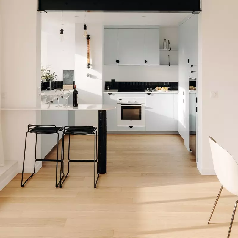 Inspired by the beauty of fleeting moments, we designed the 'Rituel' collection as an invitation to find well-being in the simplicity of everyday life. Our Solid Oak Saline Wood Flooring with its delicate mineral tones, brings a serene and light atmosphere to your interior. The artisanal brushing gives the wood a silky touch, while Its varnish finish will provide long-lasting protection against wear and scratches. Committed to preserving the environment, we engage in rigorous sourcing, prioritizing short supply chains and sustainably managed French forests.