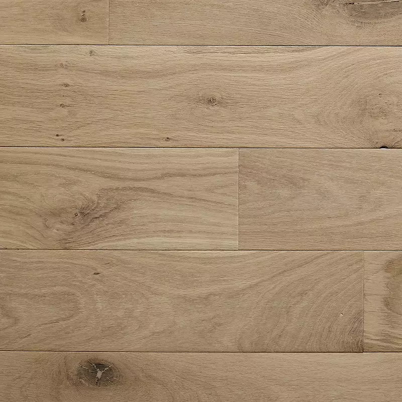 Our 'Éternel' collection stands as a bastion against the trials of time, exemplified by our Semi-Solid Alpage Oak Wood Flooring, with the thickness of its planks ensuring exceptional longevity. The artisanal brushing reveals the oak's grain, accentuating its knots. Its natural tones give the wood a unique character and texture.