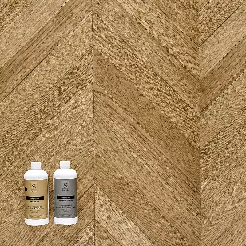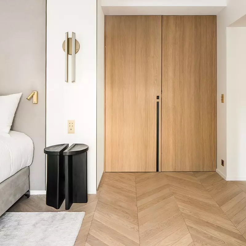 Enhance your interior decor with our Hungarian Point parquet flooring. These chevrons, an iconic parquetry pattern, will bring a striking play of light to your spaces, shaped by the rhythm of its beams. Our pigments, either varnished or oiled, with delicate tones, will warm the atmosphere of your rooms. Let yourself be charmed by this traditional heritage and immerse your decor in a timeless space.