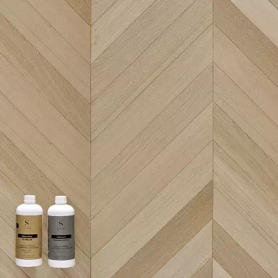 Its mineral-accented pigment, achieved through a unique oxidation process, will infuse your interiors with a sense of serenity and absolute well-being. The varnish adds a silky touch to the oak while protecting it from wear.