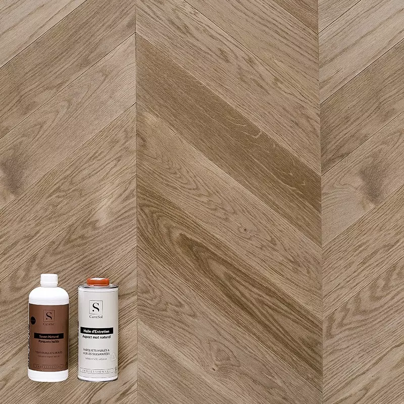 Our "Terre-Mer" collection embodies the full spectrum of emotions expressed by our terroir. Inspired by the natural richness of our surroundings, the Chevron in Semi-Solid Oak Carrière CS1 captures this essence in its color. Handcrafted by our master artisans, the Carrière CS1 Oak, with its mineral-toned pigment, brings a serene and calming ambiance to your interiors. The brushing and extra-matte varnish enhance this hue while safeguarding the wood against wear. This artisanal creation is a heartfelt tribute to our landscapes and French craftsmanship. Dedicated to the quality of our creations and the origin of our materials, we practice rigorous sourcing, emphasizing short supply chains and sustainably managed forests.
