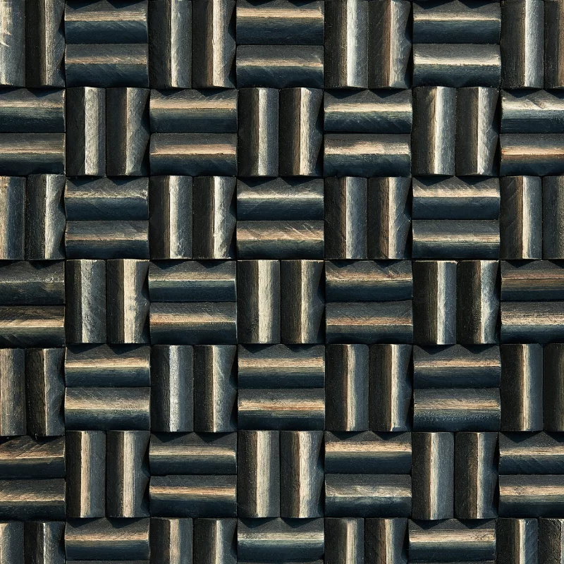 Elevate your spaces with our "L'Outrenoir" collection and our Brûlé Vif Cladding. Its surface, twice burnt and brushed, with an intense and deep black tone, sculpts light into a captivating dance.