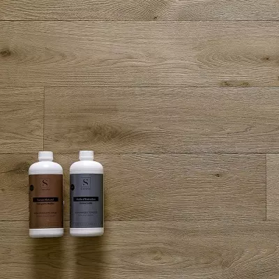 Each Les Authentiques board is aged and patinated by hand through successive oxidations. The ecological, water-based dual-component reactives ensure greater resistance to wear and stains.