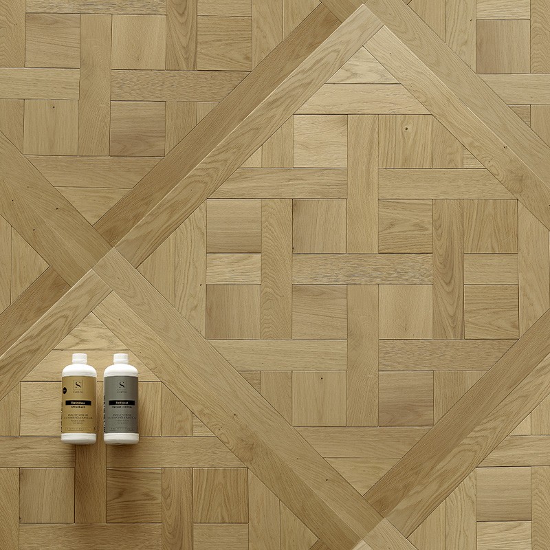 Our \'Vénitienne\' collection, featuring the Palladio Semi-Solid Naturalizzato embodies the spirit of La Dolce Vita. Its pigment, with a light natural accent created through a unique oxidation process, will imbue your interiors with an intimate and cozy atmosphere. The varnish adds a silky finish to the oak while providing robust protection against wear. Available in a variety of patterns, this versatile and adaptable design allows you to play with shapes, perspectives, and rhythms to create distinctive spaces using our Naturalizzato oak shade. With a strong commitment to environmental preservation, we ensure the quality of our parquet flooring collections by carefully sourcing wood from sustainable and eco-friendly origins.