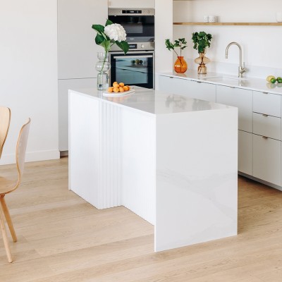 Blending the fresh sea breeze with the earthy richness of the land, our 'Terre-Mer' collection captures the diverse emotions of our terroir. Inspired by the beauty of our natural landscapes, the semi-solid Oak Horizon CS3 flooring showcases a hue that reflects this richness.