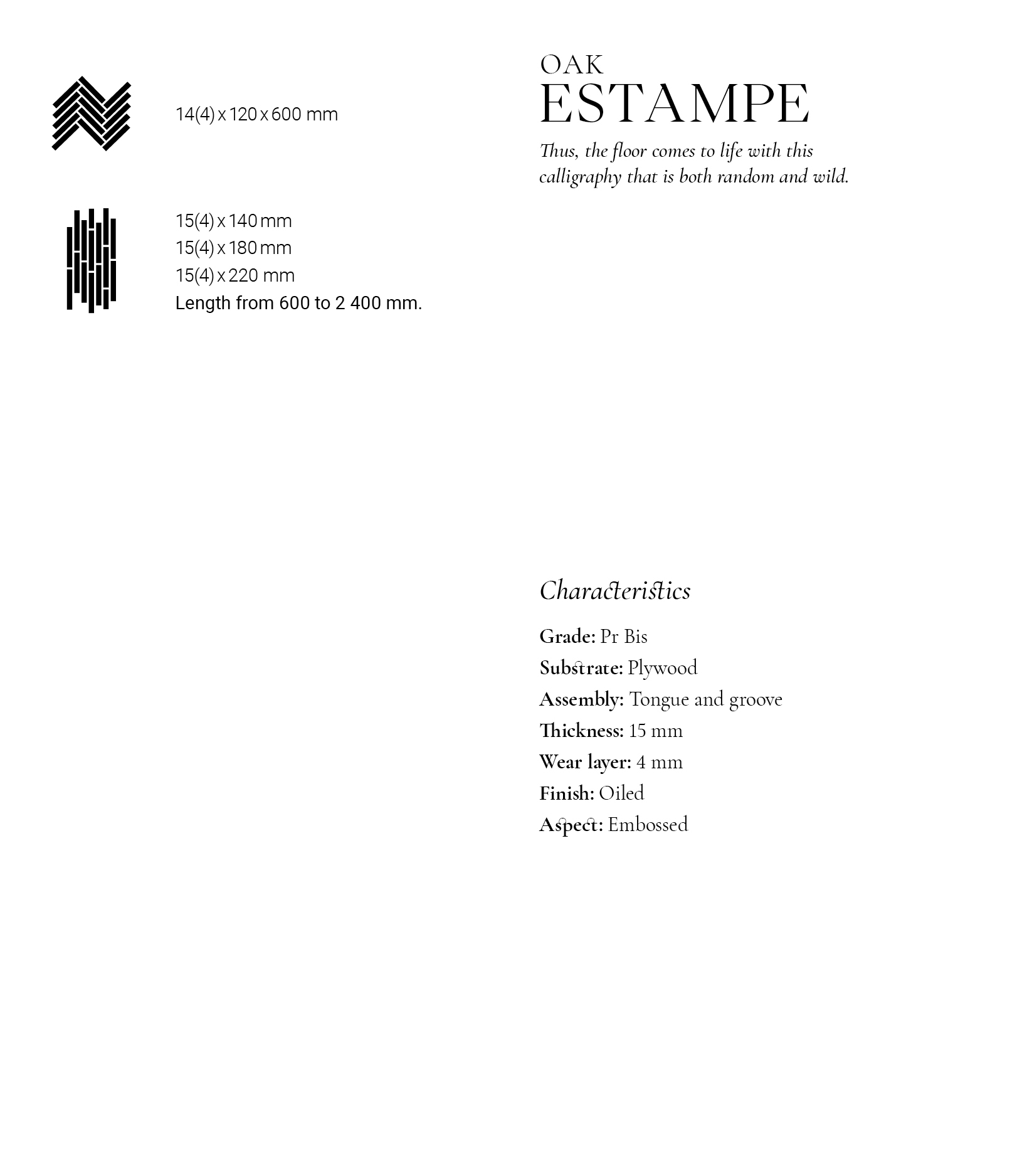 Let yourself be transported to wild lands with our "Australe" collection and our Semi-Solid Oak Estampe Parquet. Its textured lines, reminiscent of charred wood meant to be walked upon freely, extend from floor to wall.