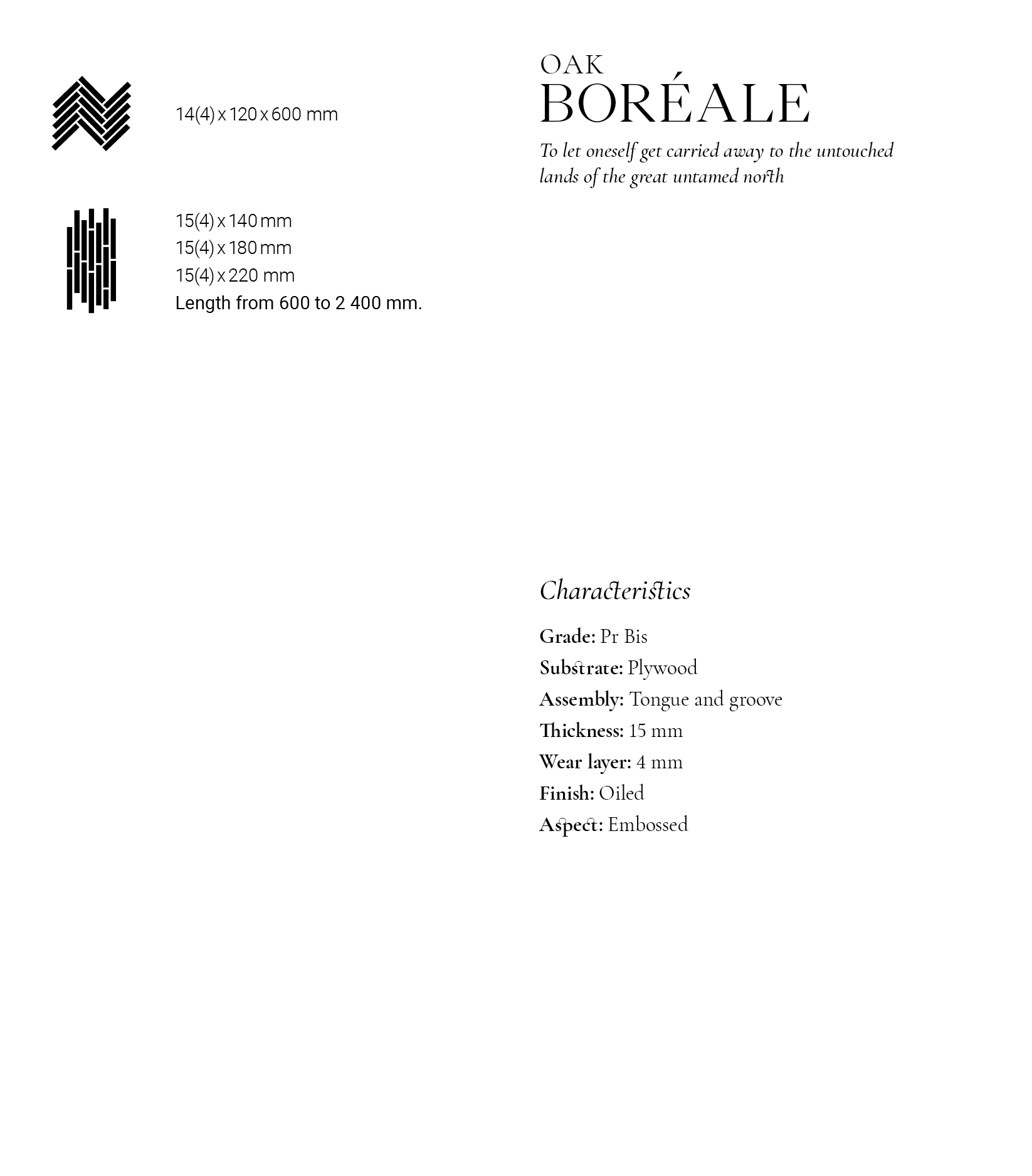 Let yourself be transported to wild lands with our "Australe" collection and our Semi-Solid Oak Boréale Parquet. Its textured lines, reminiscent of charred wood meant to be walked upon freely, extend from floor to wall.