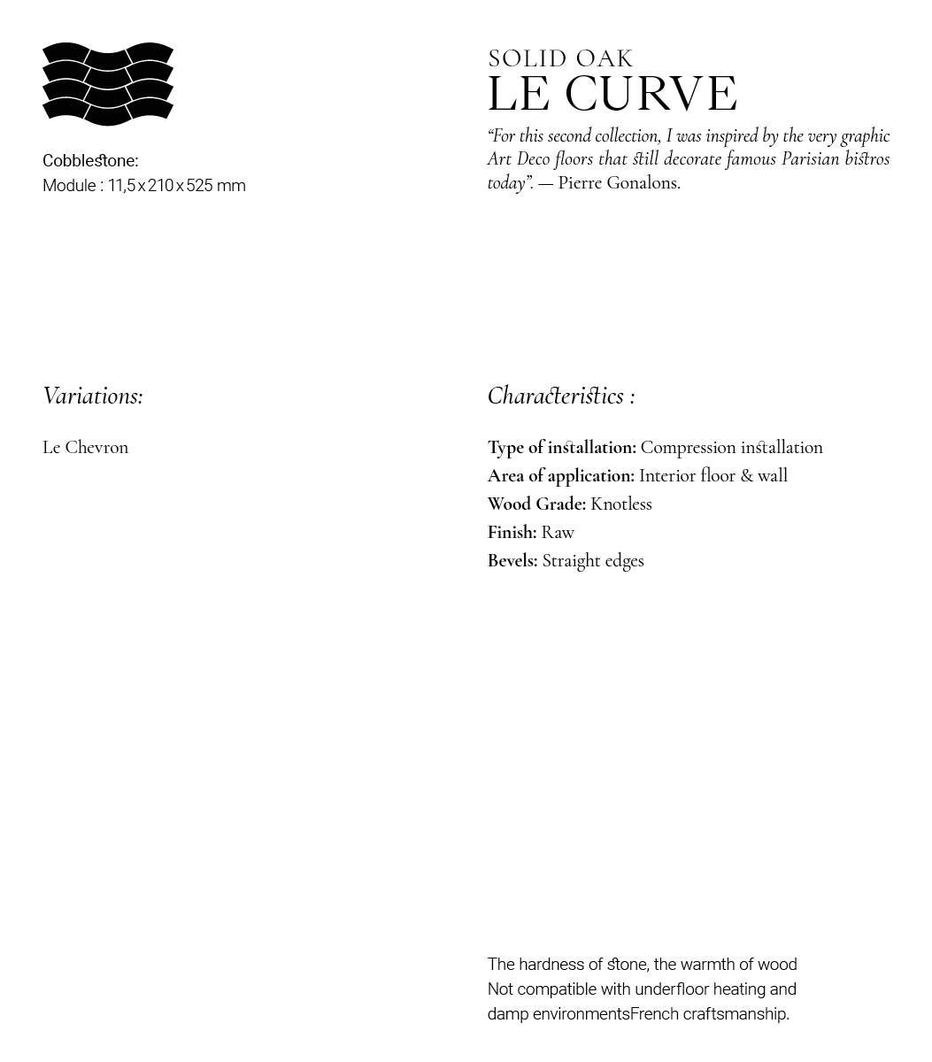The choice of dimensions for your parquet and decking planks is of great importance. It allows you to play with the perspectives of your interiors and exteriors. While wide planks will enhance your large spaces, narrow planks will give them an unparalleled sense of grandeur.
