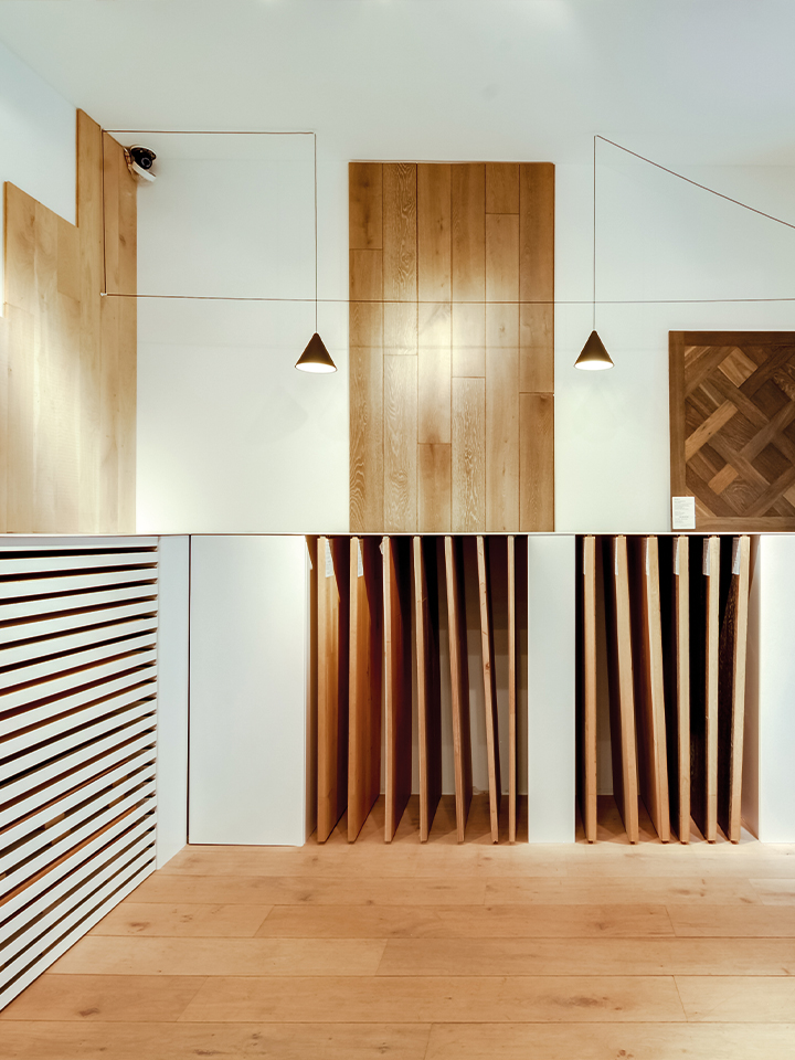 Our parquet showroom in Boulogne is distinguished by its minimalist architectural concept which opens the way to decoration. The scenography of the places offers a unique experience to the public. Here, materials have carte blanche and can express themselves freely, with life-size trendy boards and a layout with clean lines, projecting the visitor into the heart of their future creation. Discover our exceptional selection of parquet floors and terraces. Make an appointment now and benefit from personalized support to make your project a reality with our in-store experts.