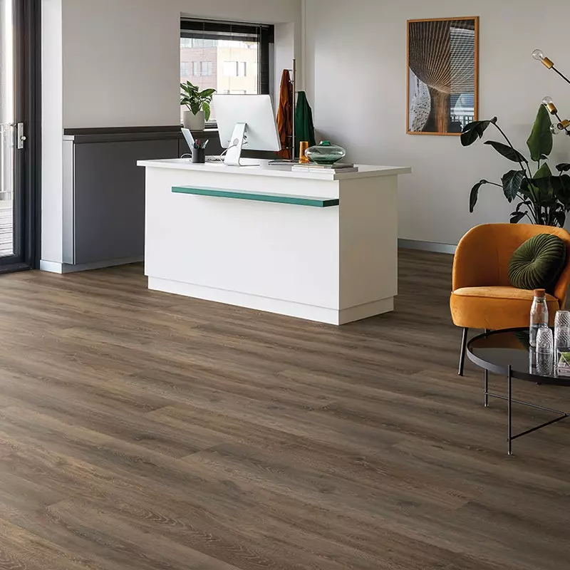 Authentic Oak XL Lombardia vinyl planks express the perfect balance between the elegance of wood and the practicality of a modern floor. The long, wide planks provide a natural texture, capturing the essence of oak faithfully. The pure PVC backing, reinforced with a double layer of film, increases the beauty and durability of the floor. The wear layer and matte finish of the PU layer provide exceptional resistance, ideal for environments subject to heavy traffic. This range is therefore perfectly suited to various projects, ranging from residential homes to tertiary spaces.